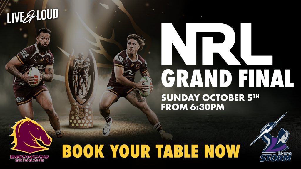 Grab your mates and secure your spot for the biggest game of the season, kick-off is at 6:30PM! Tables are booking out fast, so click the button below to BOOK NOW!
